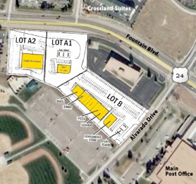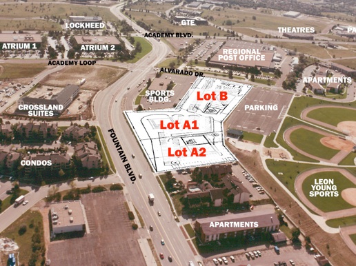 4.5 acres zoned PBC facing Fountain Blvd., across from the Colorado Springs Regional Post Office and adjacent to the Leon Young Youth Baseball Complex. Multiple apartment complexes with 4800+ units in a one mile radius. Ideal for fast food, family restaurant, strip shopping center, day care, medical offices, motel, pizza, gas station/convenience store, and bank.